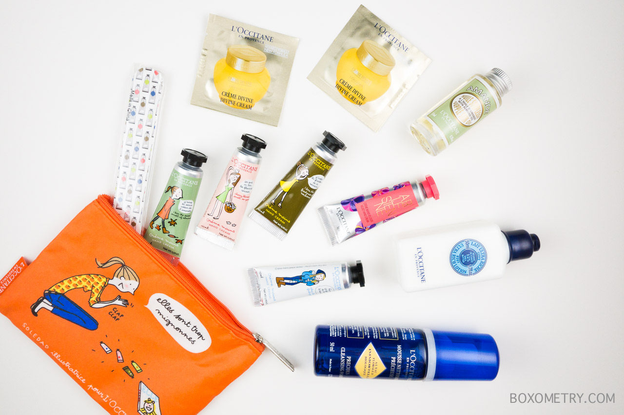 All of the boxes also contains the following sample and deluxe samples of L'Occitane products: