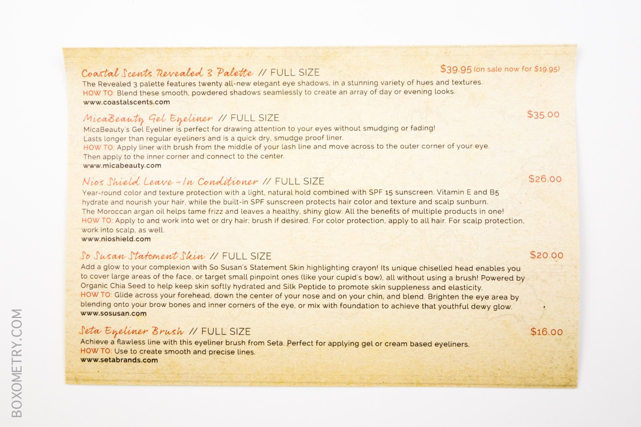 The retail value of the Coastal Scents Revealed 3 Palette is $39.95, but you can usually find their palettes on sale for $19.95. Many people are fans of the Coastal Scents eye palettes. I received Revealed 2 from a previous Boxycharm box, so I am excited to get Revealed 3 as well for some more color options!