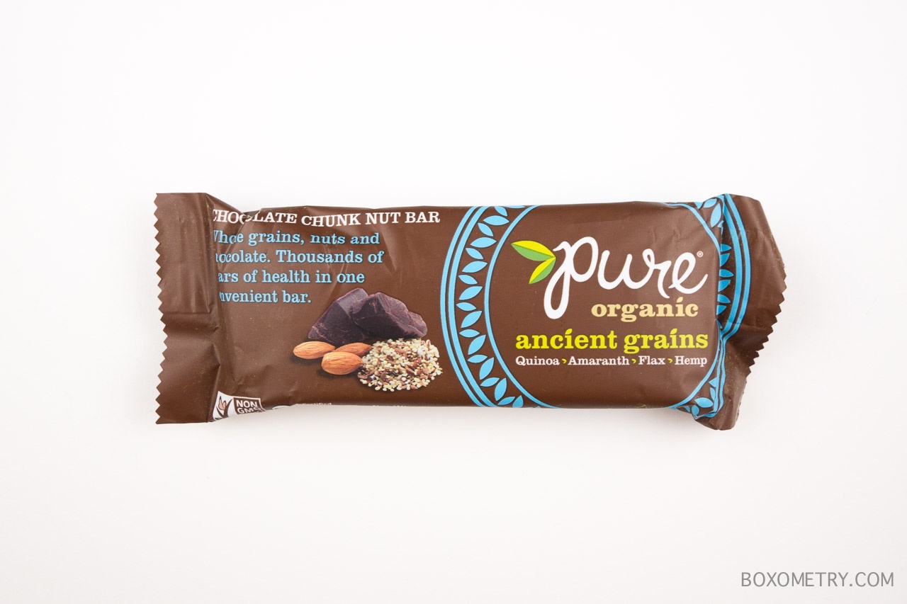 The Pure Ancient Grains bars are certified organic, non-GMO, vegan and gluten-free. There are a couple of different flavors available, so subscribers will receive one at random. I got the chocolate chunk one. Yum! It is a healthier alternative to regular energy bars with complete source of proteins, fiber and antioxidants, but less sugar and sodium. This is definitely one of the better tasting healthy energy bars.